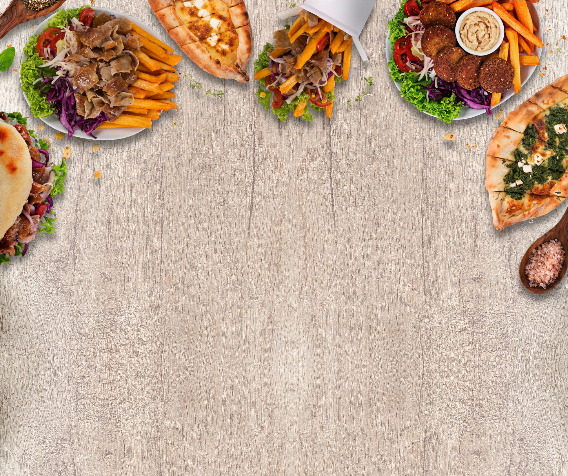 Kebab wołowina z frytką belgijską oraz serem zapiekane w piecu, sałata lodowa z pomidorem i ogórkiem, sos do wyboru czosnkowy, jogurtowy, pomidorowy w wersji łagodnej lub ostrej.