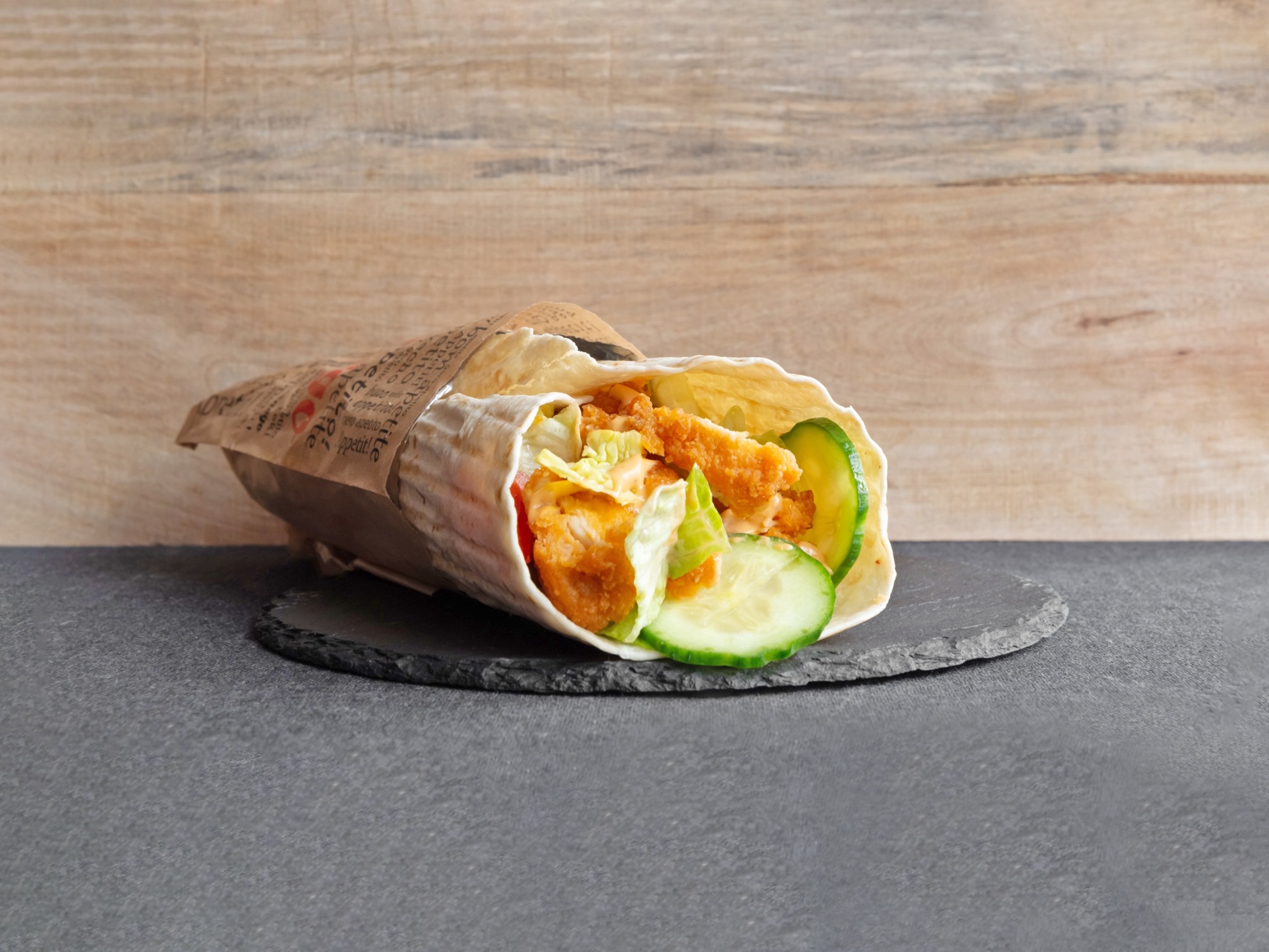 tortilla 30cm,sos, mięso, cebula, kapusta biała i czerwona, sałata lodowa, pomidor, ogórek. -